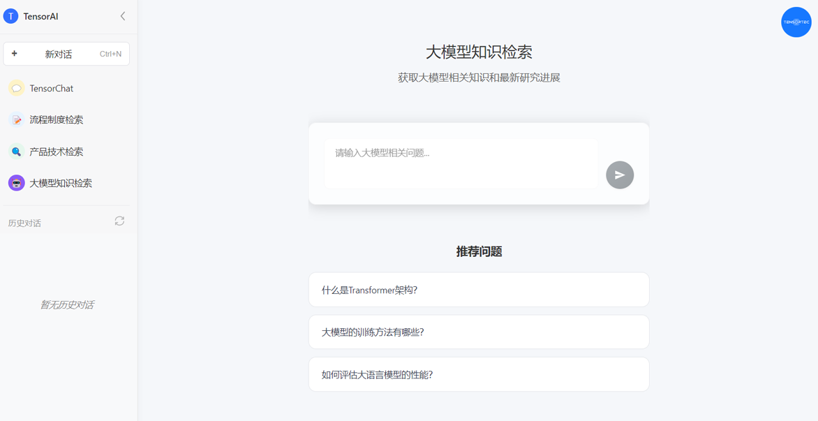 TensorAI Large model knowledge retrievals page